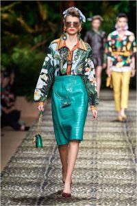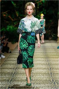 Kwiaty, wzory, printy. Sukienki w kwiaty najchętniej nosimy wiosną, ale modne były również w poprzednich sezonach i zapewne pozostaną z nami jeszcze na długo. Myślę, że ten wzór możemy już uznać za ponadczasowy. Jednak w sezonie wiosna-lato 2020 znajdziemy również dżunglę, tropiki i podróże w nieznane. Tropikalne printy – tym razem wyeksponowano je w wersji solo lub w total looku. Połączono je ze zwiewnymi tkaninami, takimi jak szyfon, długościami maksi i mini oraz głębokimi dekoltami.