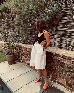Wskazówka: Bermudy to jednak spodnie, które nie należą do najłatwiejszych. Proponuje zestawić je z klasyczną białą koszulą, oversize’owym swetrem lub elegancką marynarką.
