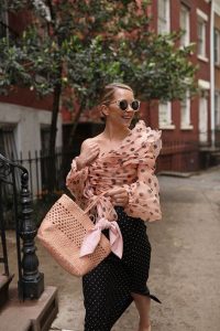 – Fantazyjne wiązania, kokardy, bufiaste rękawy to trend, który pozostał z nami z poprzedniego sezonu. Dlatego jeśli w niego zainwestowałaś, spokojnie wykorzystasz go również teraz.
