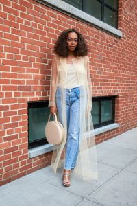 Wskazówka: Przezroczystości możesz połączyć z jedwabnym, koronkowym topem, który dodatkowo nada lekkości oraz kobiecej subtelności Twojej stylizacji.